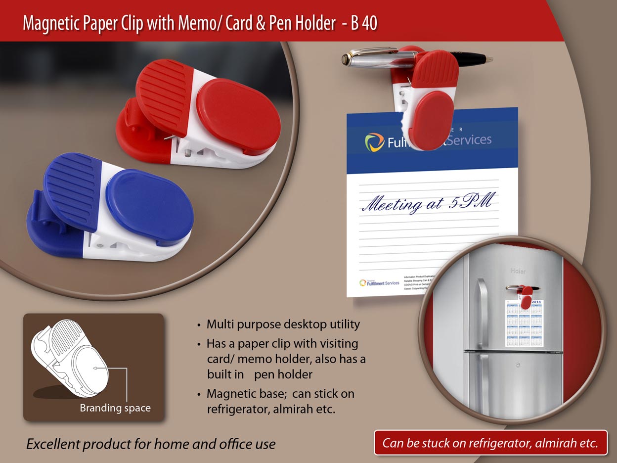 Magnetic Paper Clip With Memo / Card & Pen Holder