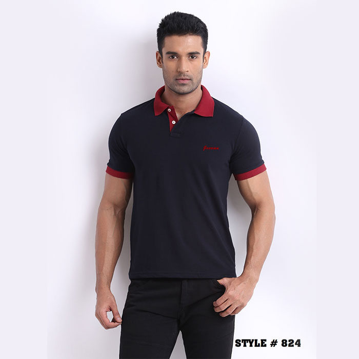 Dark Blue With Red Collar T-Shirt