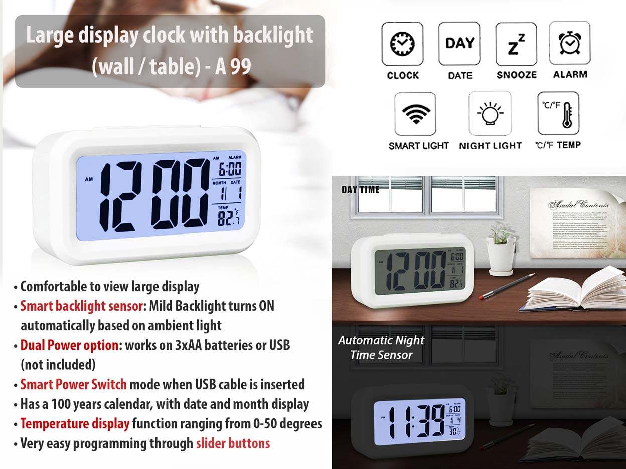 Large Display Clock With Backlight